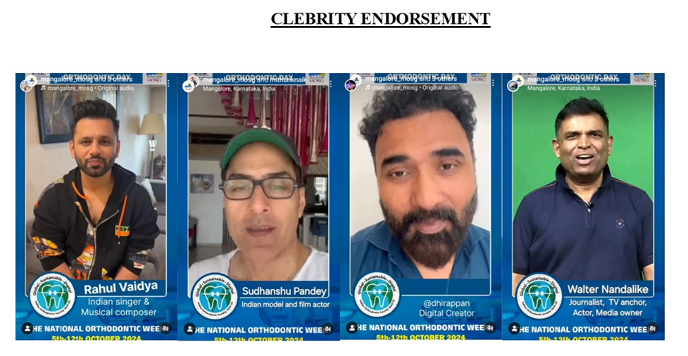 Celebrity endorsement plays a crucial role in orthodontic awareness by increasing visibility, building trust, and shaping public perception of orthodontic care. Celebrities can reach large, diverse audiences, particularly younger demographics, and lend credibility to orthodontic treatments. Their endorsements help normalize dental care, make it more appealing, and influence trends, especially in cosmetic dentistry. Celebrities also play a key role in inspiring confidence and promoting early treatment, while their collaborations with brands can drive innovation and expand market reach. Ultimately, celebrity endorsements elevate the perceived value of orthodontic services and encourage more people to seek treatment.